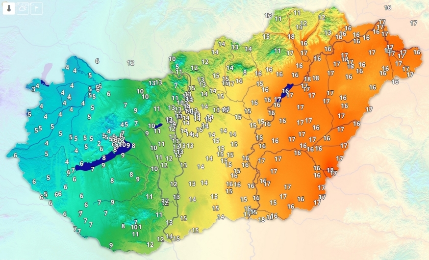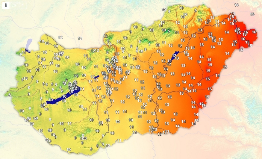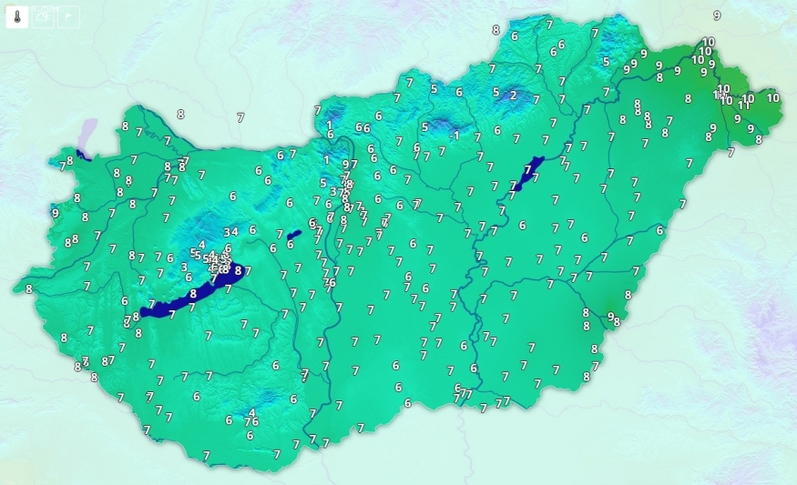 Északkelet a kivétel, ahol néhol 10 fok fölé is melegedett a levegő, másutt jellemzően 6 és 8 fok között a hőmérséklet.