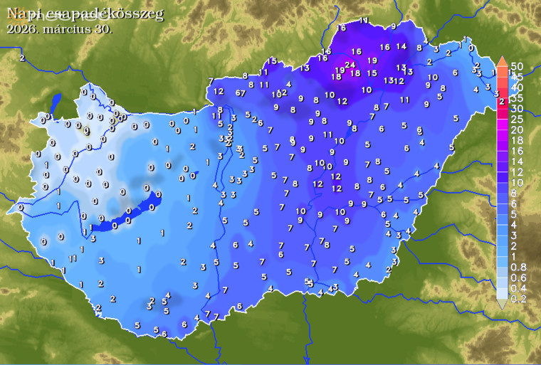 Északon néhol 20 mm-nél is több esett.