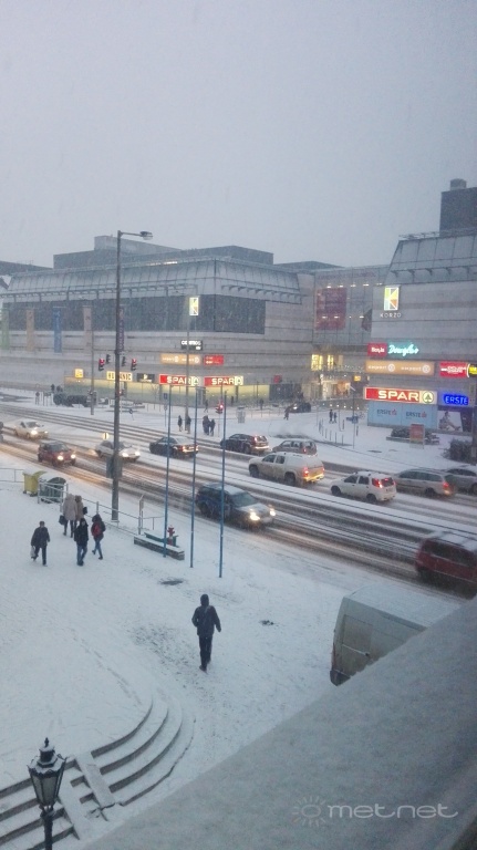 Ma Pesten voltam egész nap, épp a kenyérlángosomat falatoztam, mikor elkezdett gyengén havazni, igazi kriszmöszfíling volt