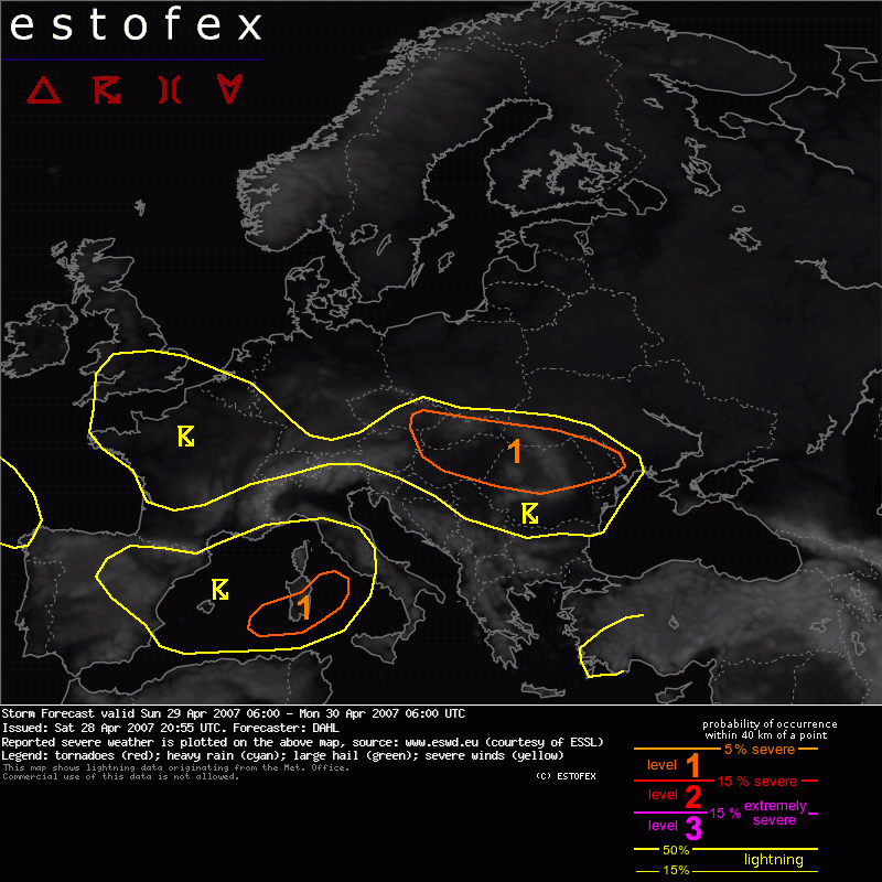 Estofex aktuális elõrejelzés: