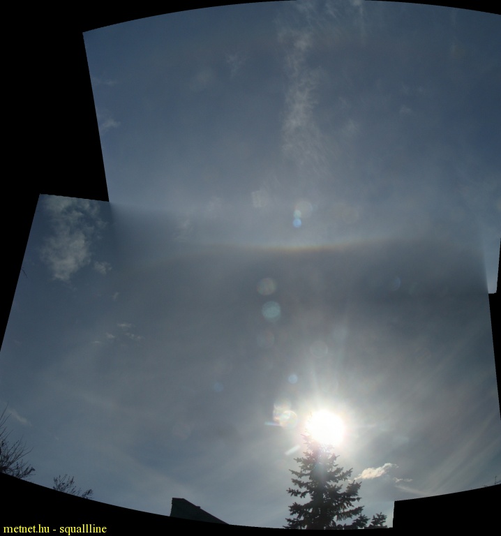 | Leírás: Komplex halo: körülíró halo, melléknap, felsõ oldalív és parhelikus kör darabja. | |