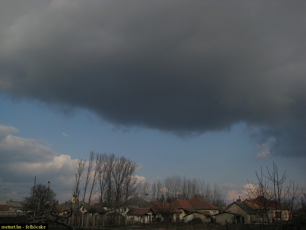 2010-03-07 16:08:39 - Kosakiss A korábbi csodálatos kumuluszok (a kép jobb szélén, alul még látható egy szép torony) nem birnak az erõsödõ hõmérsékleti inverzióval, egyre inkább Stratocumulus-szá töppednek össze.
