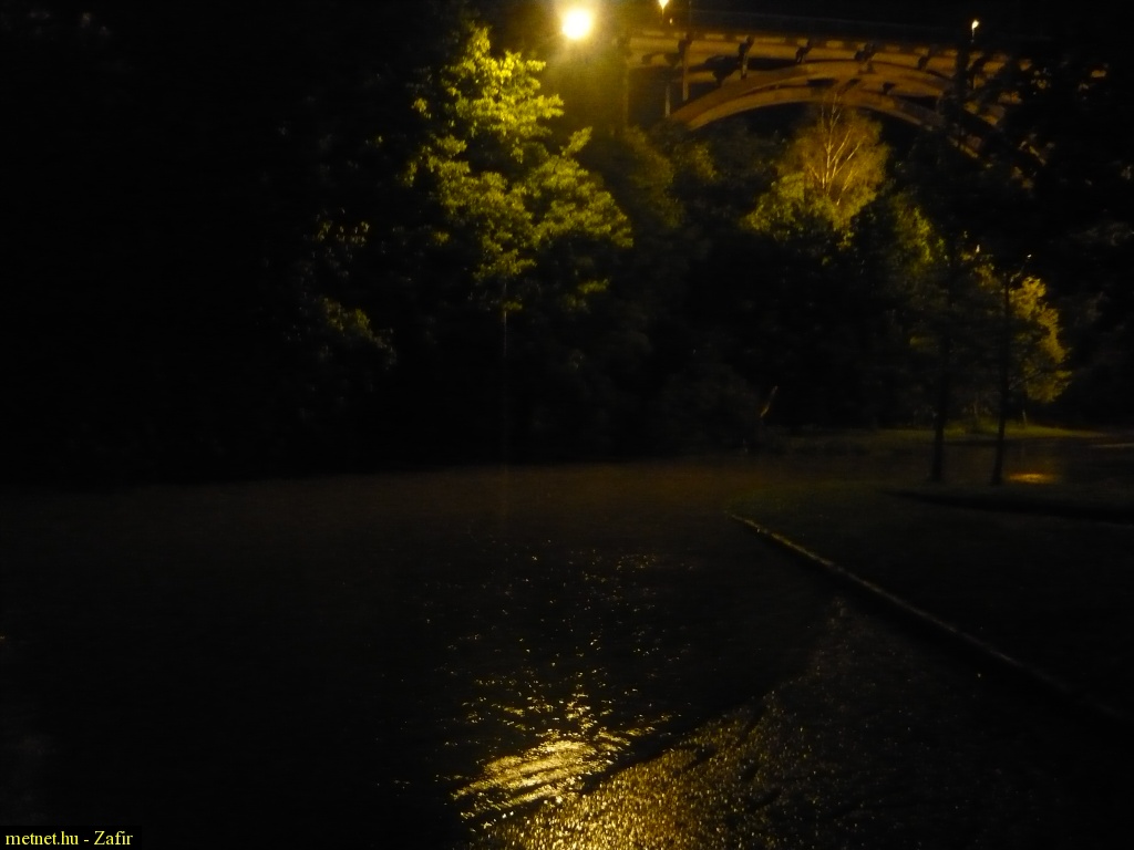 | Leírás: Árad a Séd patak Veszprémnél a két és fél napos esõzés után A képhez: A fasor mögött folyik a patak normális esetben. Jelenleg az elõtérben lévõ parkolót is elöntötte a víz. Háttérben a híres-hírhedt Viadukt. |