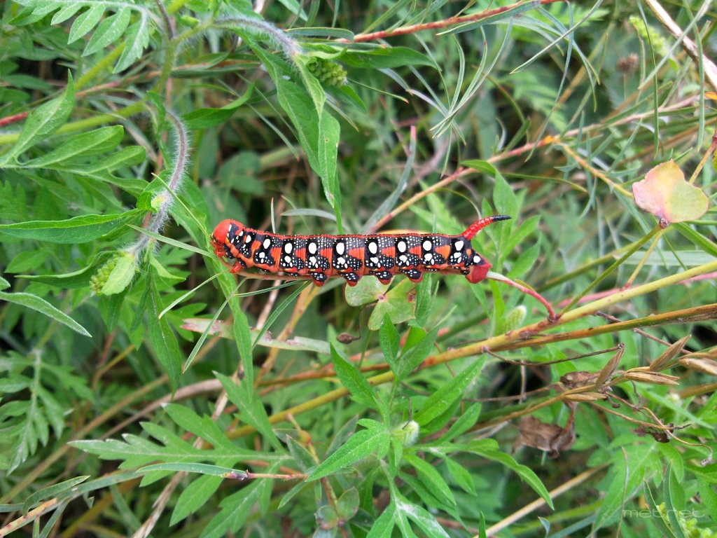 2010-08-07 09:40:18 - Noli Csodálatos kép egy gyönyörû lepke babájáról, kutyatejszender (Hyles euphorbiae) lesz, ha megnõ. :-))) Gratulálok a kiváló zsákmányhoz!