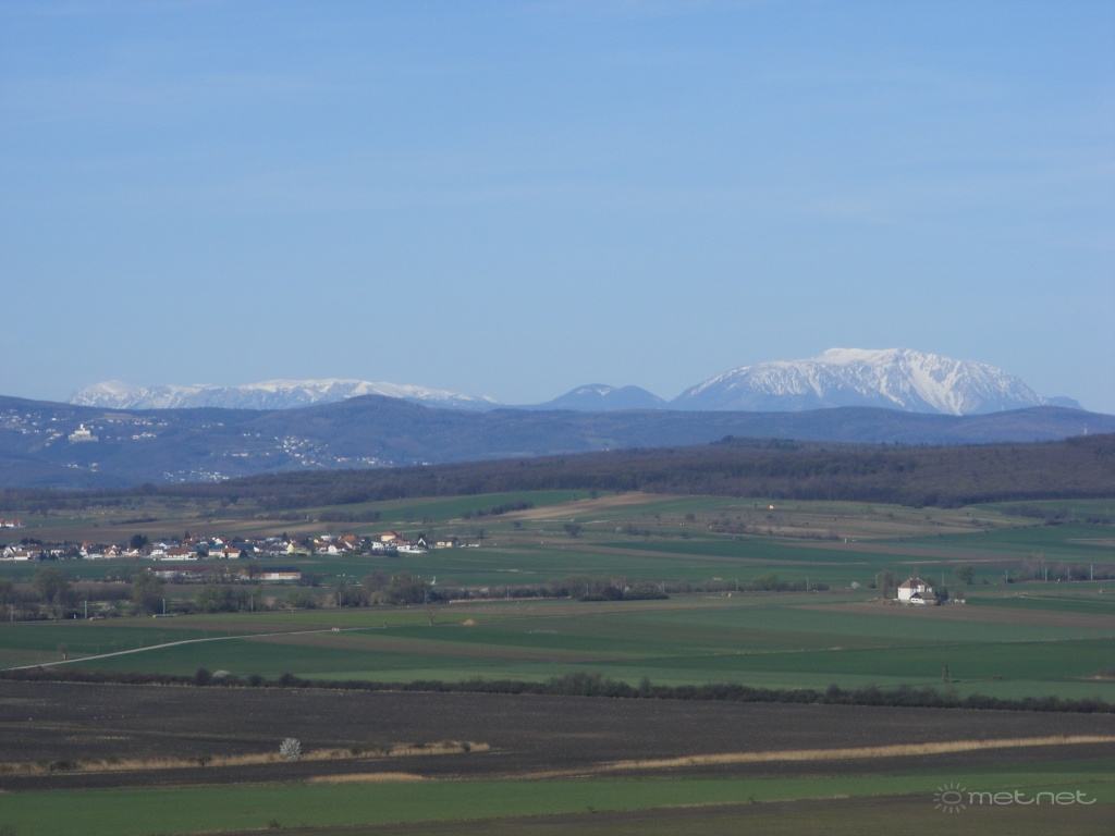 | Leírás: A Schneeberg és a Rax a soproni Hubertusz kilátóból. | |