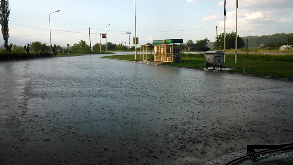 Leírás: Felhõszakadás, jégesõvel Kunszentmárton déli részén. |