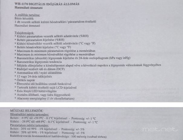 Leírás: WS-WH 1170 adatlapja