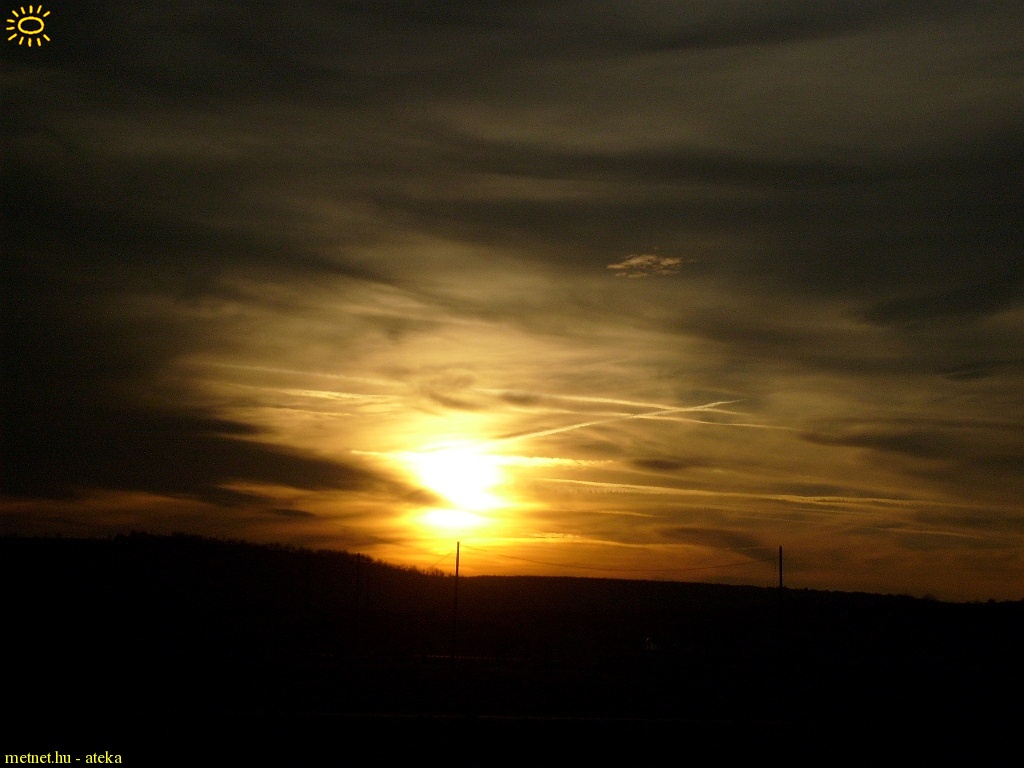 Leírás: Cirrusokkal és kondenzcsíkokkal tûzdelt naplemente.