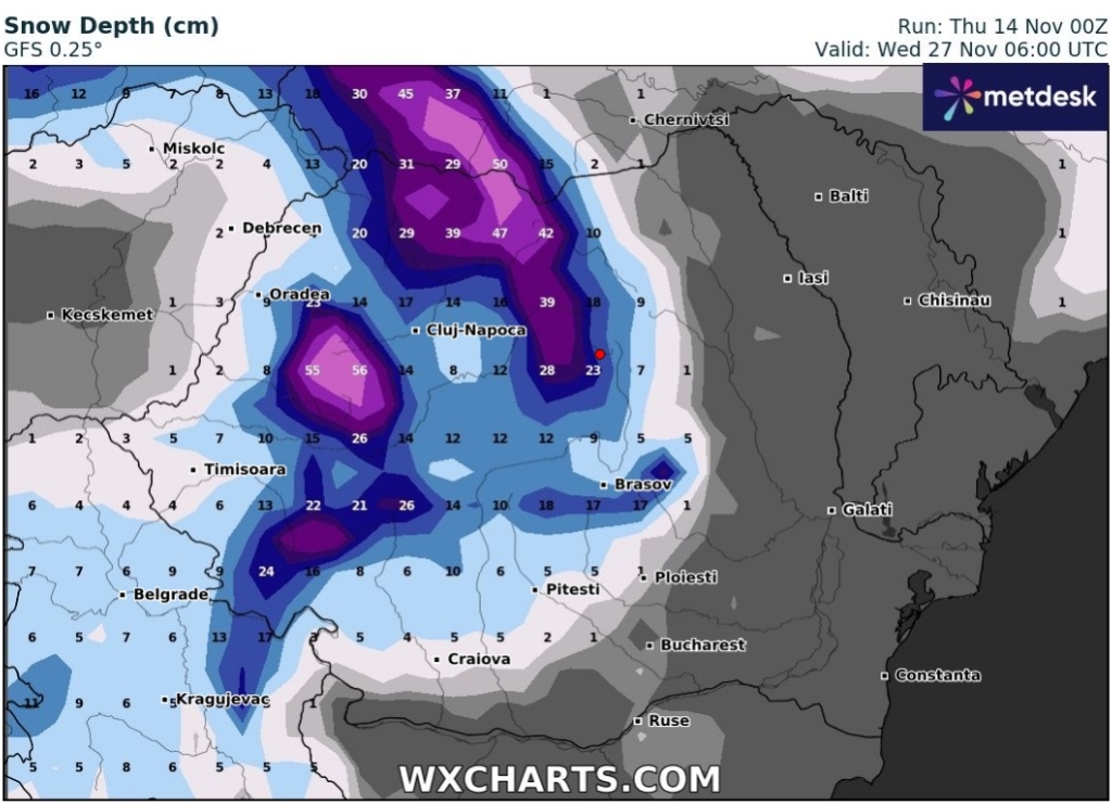 Hétfőn este melegfront érkezik, ami főként északra és keletre hoz csapadékot, zömében havat, de előfordul majd vegyes halmazállapotú csapadék is.
