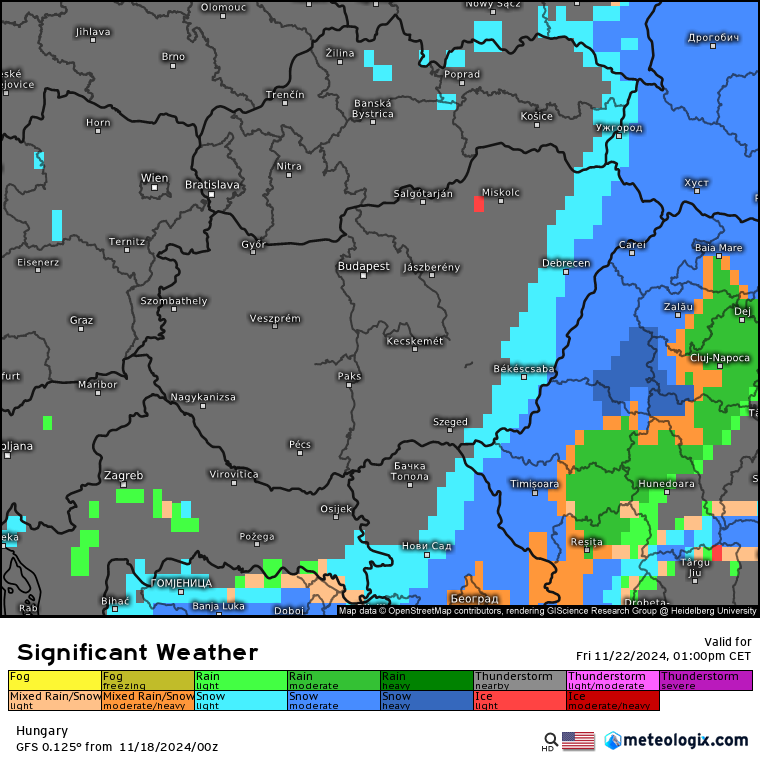 Hétfőn este melegfront érkezik, ami főként északra és keletre hoz csapadékot, zömében havat, de előfordul majd vegyes halmazállapotú csapadék is.