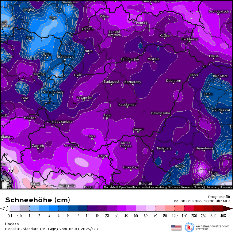 Hétfőn este melegfront érkezik, ami főként északra és keletre hoz csapadékot, zömében havat, de előfordul majd vegyes halmazállapotú csapadék is.