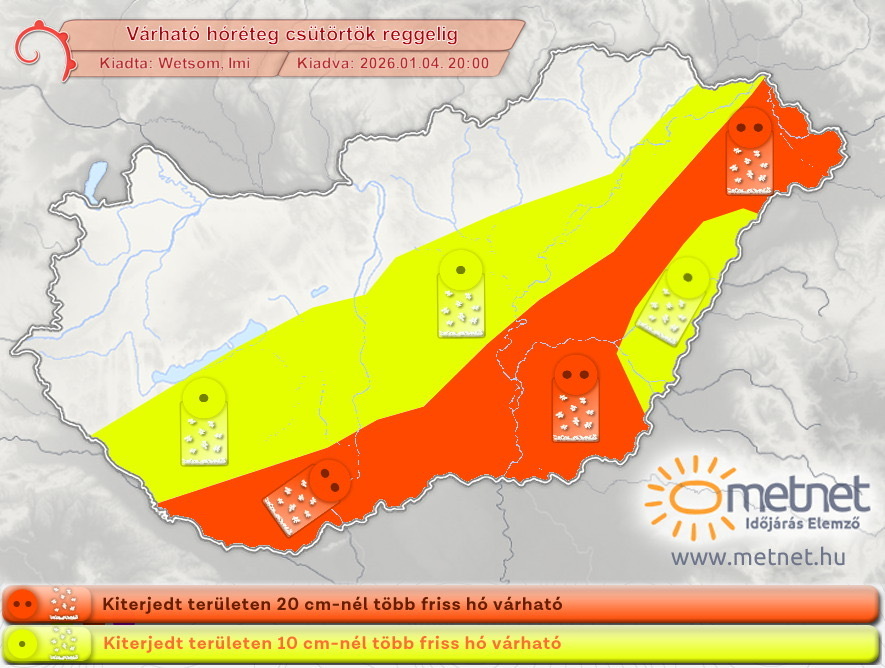 Hétfőn este melegfront érkezik, ami főként északra és keletre hoz csapadékot, zömében havat, de előfordul majd vegyes halmazállapotú csapadék is.