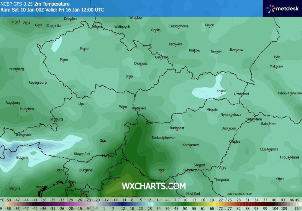 Hétfőn este melegfront érkezik, ami főként északra és keletre hoz csapadékot, zömében havat, de előfordul majd vegyes halmazállapotú csapadék is.