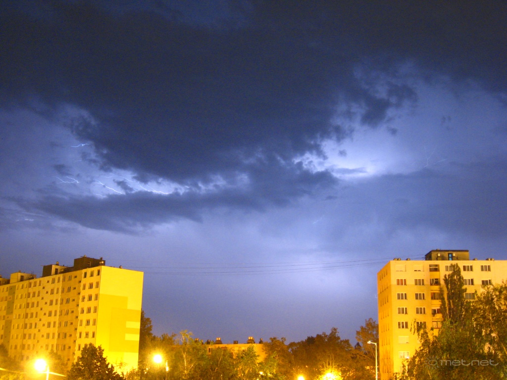 Leírás: Az éjszakai, hajnali szegedi vihar villámai.