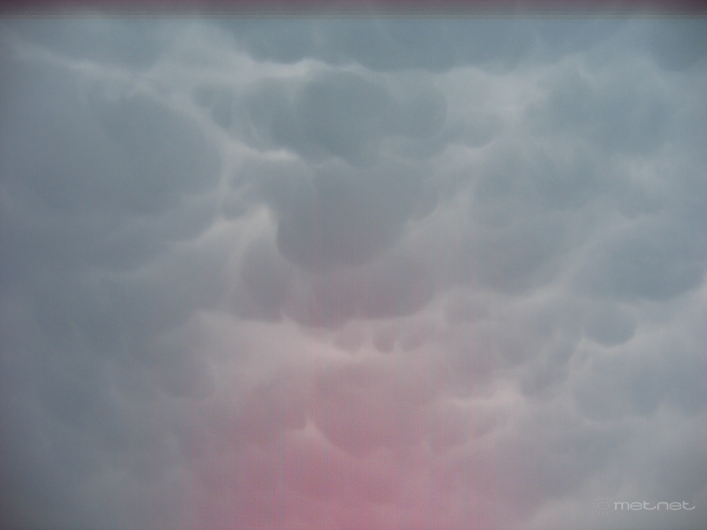 | Leírás: A zivatar közeledtét jelzõ mammatusok. (a kép alján lévõ piros fény a fényképezõ miatt van) |