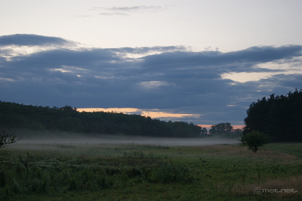 Leírás: Júliusi sekély köd a mocsár felett