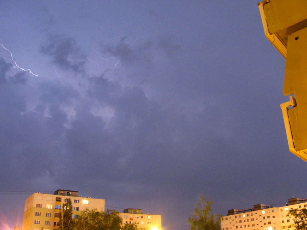 Leírás: A várostól DK-re, majd a városon áthaladó zivatar villámai.