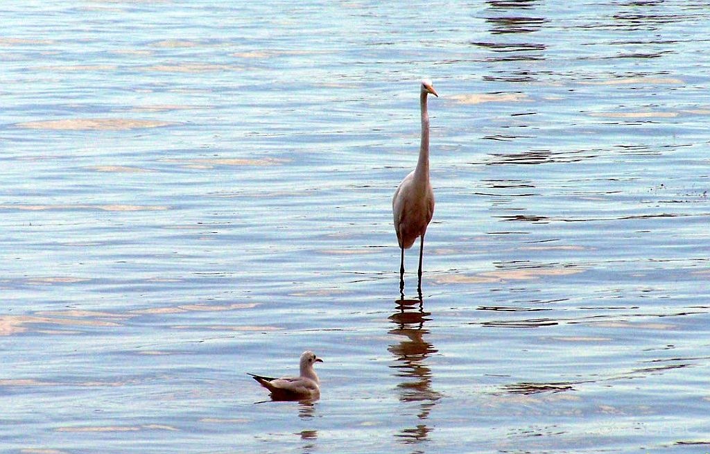 | Leírás: Kócsag-sirály reggeli találkozás a Balatonon | |