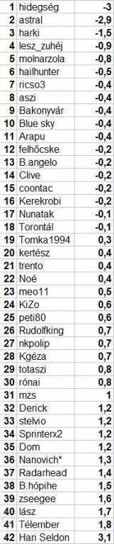 Leírás: A 2011 decemberi T anomáliára (1981-2010-hez viszonyítva) érkezett tippek. Azonos tippnél a beérkezés rangsorolt.