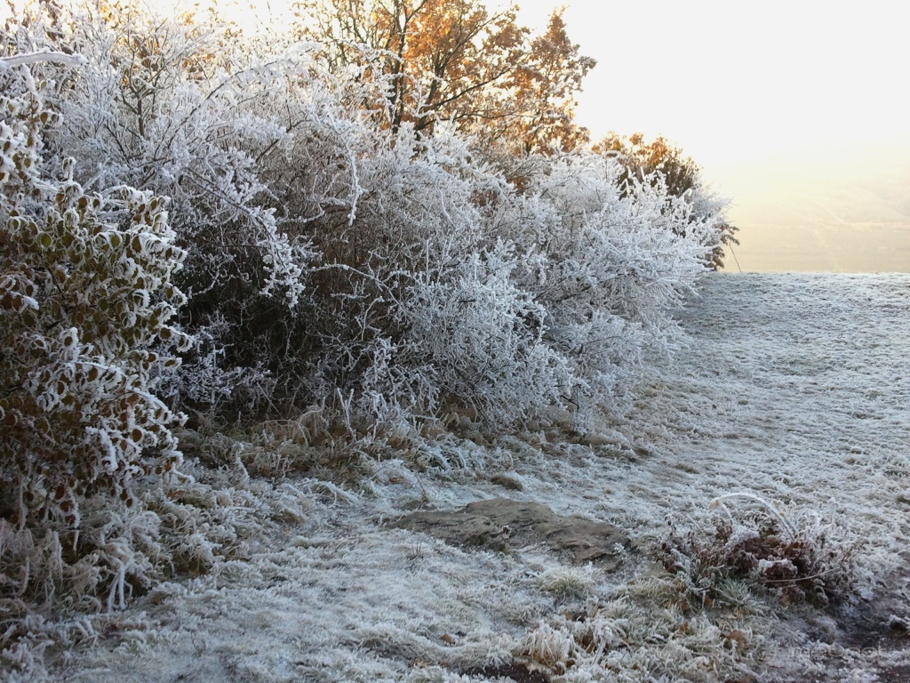 Leírás: Zúzmarás területek a hidegpárnás idõ után a Nagy-Eged hegy csúcsán.