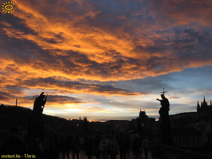 | Leírás: Színpompás prágai naplemente a Károly-hídról | |