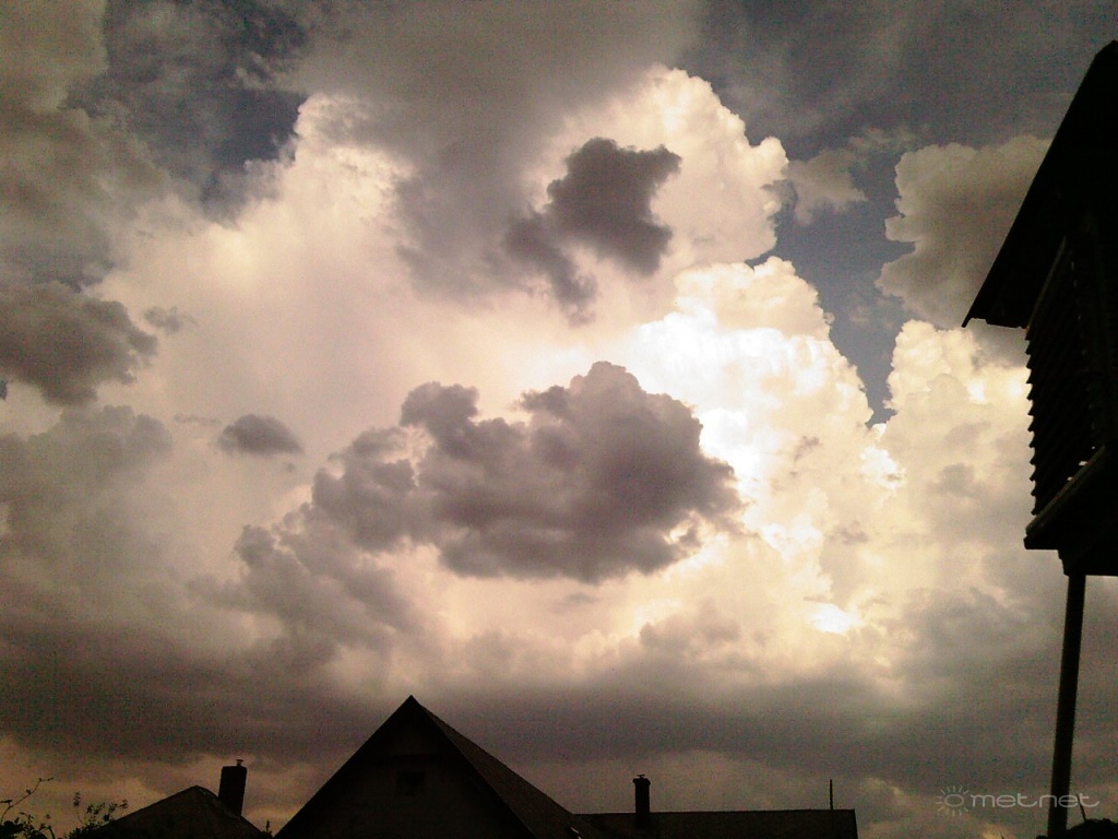 Leírás: Zirc: negyedik órája képzõdnek a gomolytornyok a távolban,s közelben,de csak fél órája dörrent meg(Mór K-re)Csapadékot a képek tanulsága szerint szárazon várják a mérõhengerek.