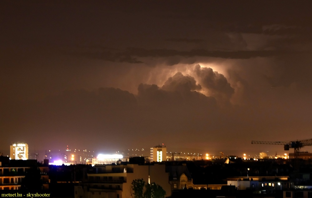 Leírás: A dunántúli zivatarok villámai Pestrõl nézve