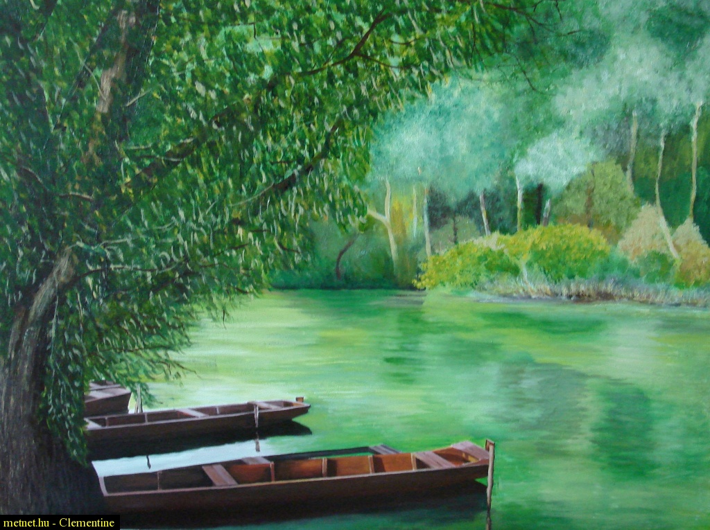 Leírás: Ladikok Tokajban.Olajfestményem.