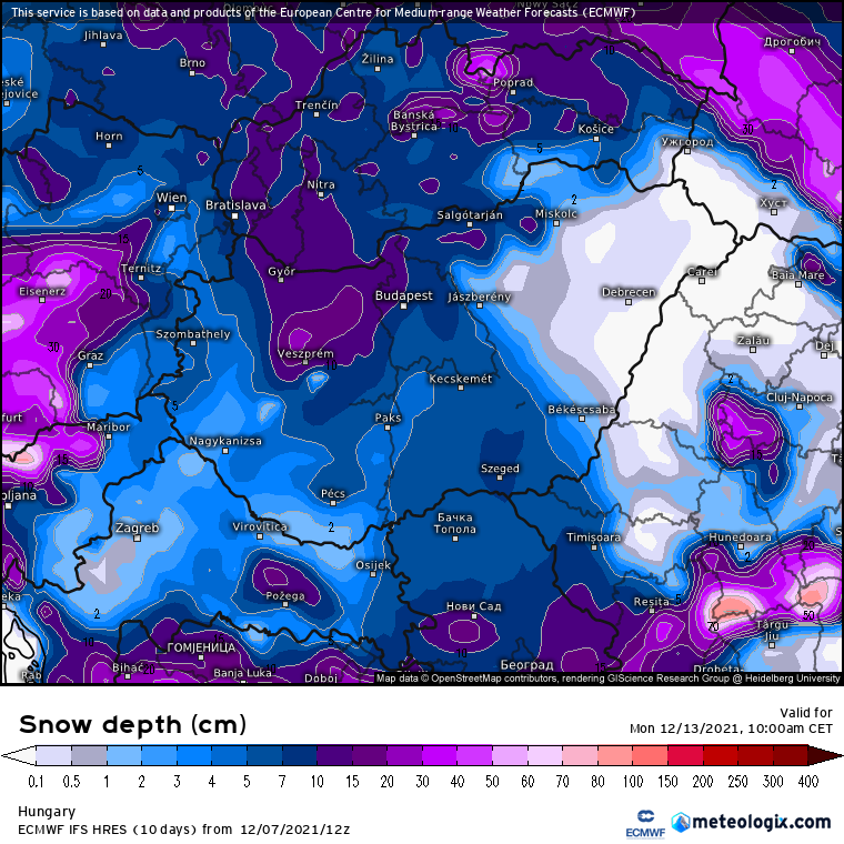 Hétfőn este melegfront érkezik, ami főként északra és keletre hoz csapadékot, zömében havat, de előfordul majd vegyes halmazállapotú csapadék is.
