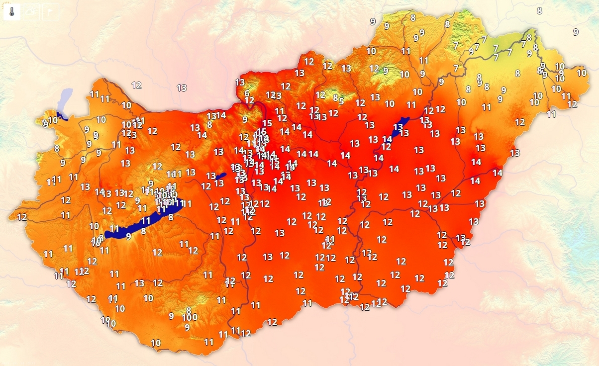 A főváros környezetében is 14-15 fokokat mérnek.