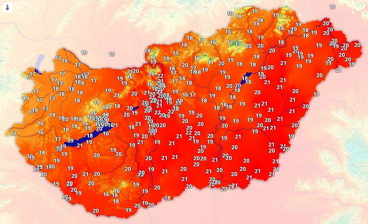Kedden a keleti tájak kivételével kissé hűvös volt az idő, ma viszont ismét 20 fok körül a hőmérséklet az ország jelentős részén, csupán északnyugat marad el pár fokkal.